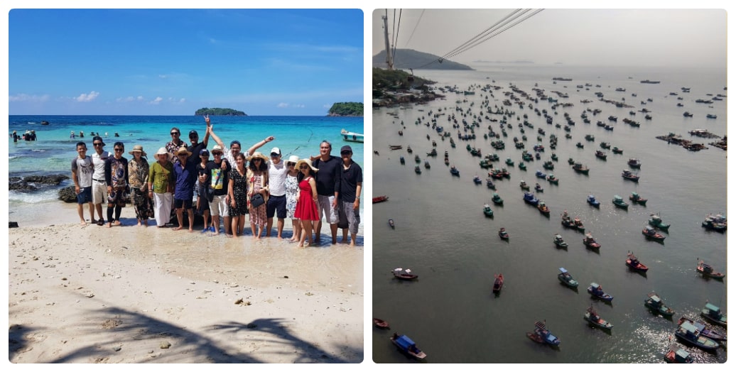 – Đoàn tiếp tục di chuyển đến cảng An Thới – vào khu vực Cáp Treo Hòn Thơm và chinh phục cáp treo vượt biển được tổ chức Guinness trao tặng chứng nhận cáp treo dài nhất thế giới ( 7.899,9m).